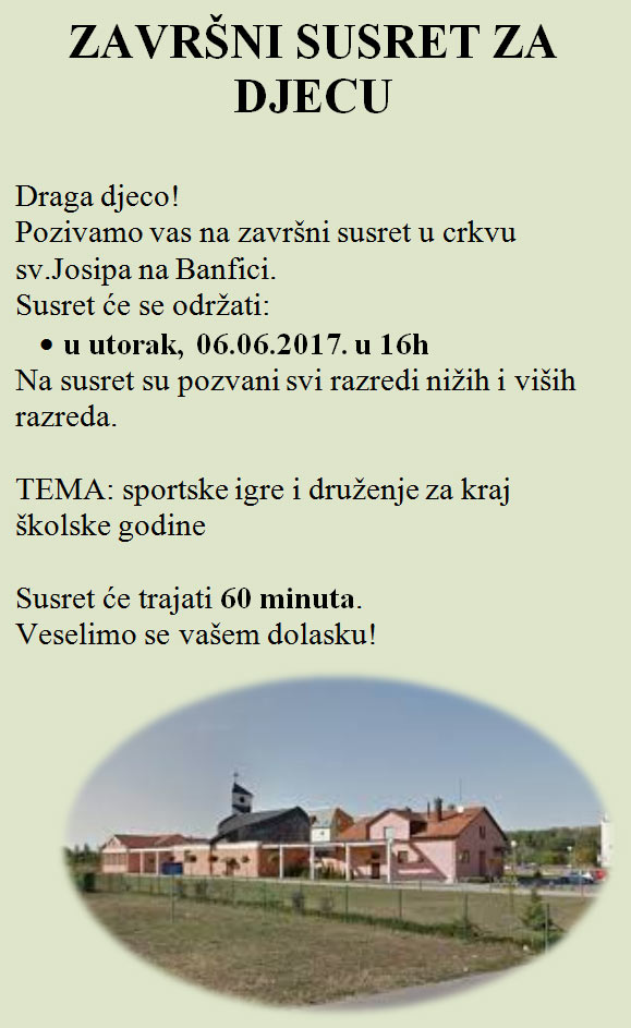 Poziv nižim razredima na susrete 2. i 3. veljače (utorak i srijeda).